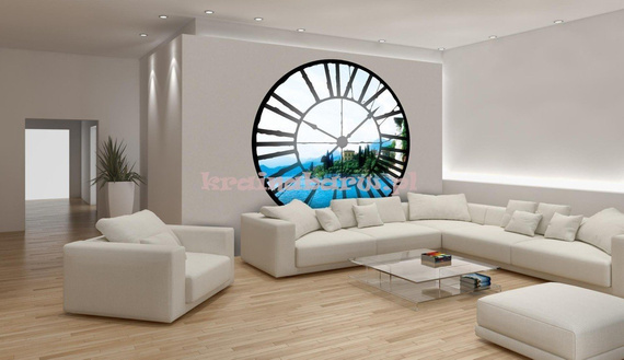 - Okrągła fototapeta na flizelinie WIDOK PRZEZ ZEGAR