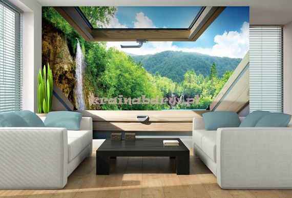 Fototapeta 10391 OKNO DACHOWE - GÓRY I WODOSPAD