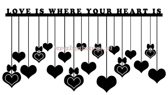 Nowoczesne naklejki samoprzylepne z czarnymi serduszkami oraz napisem: