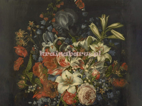 Wzór z kolekcji Noire, inspirowany wielką sztuką, jest reprodukcja obrazu Holenderskiego malarza z XVIII w Abrahama Mignona specjalizującego się w malarstwie martwej natury.