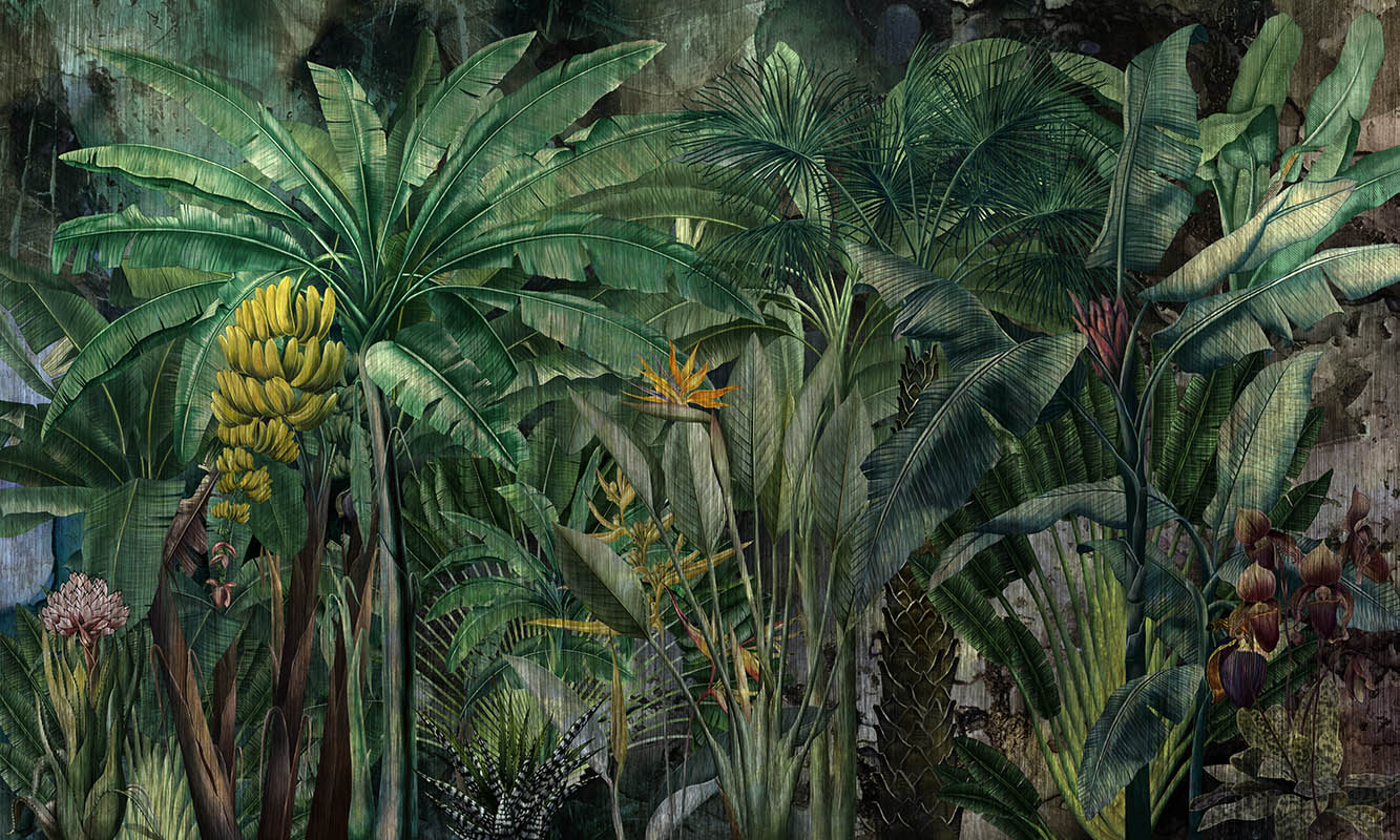 kwiaty, rośliny, vintage, luksusowe, Wonderwall, botaniczne, dżungla, palmy, banany, liście , tropiki, egzotyka