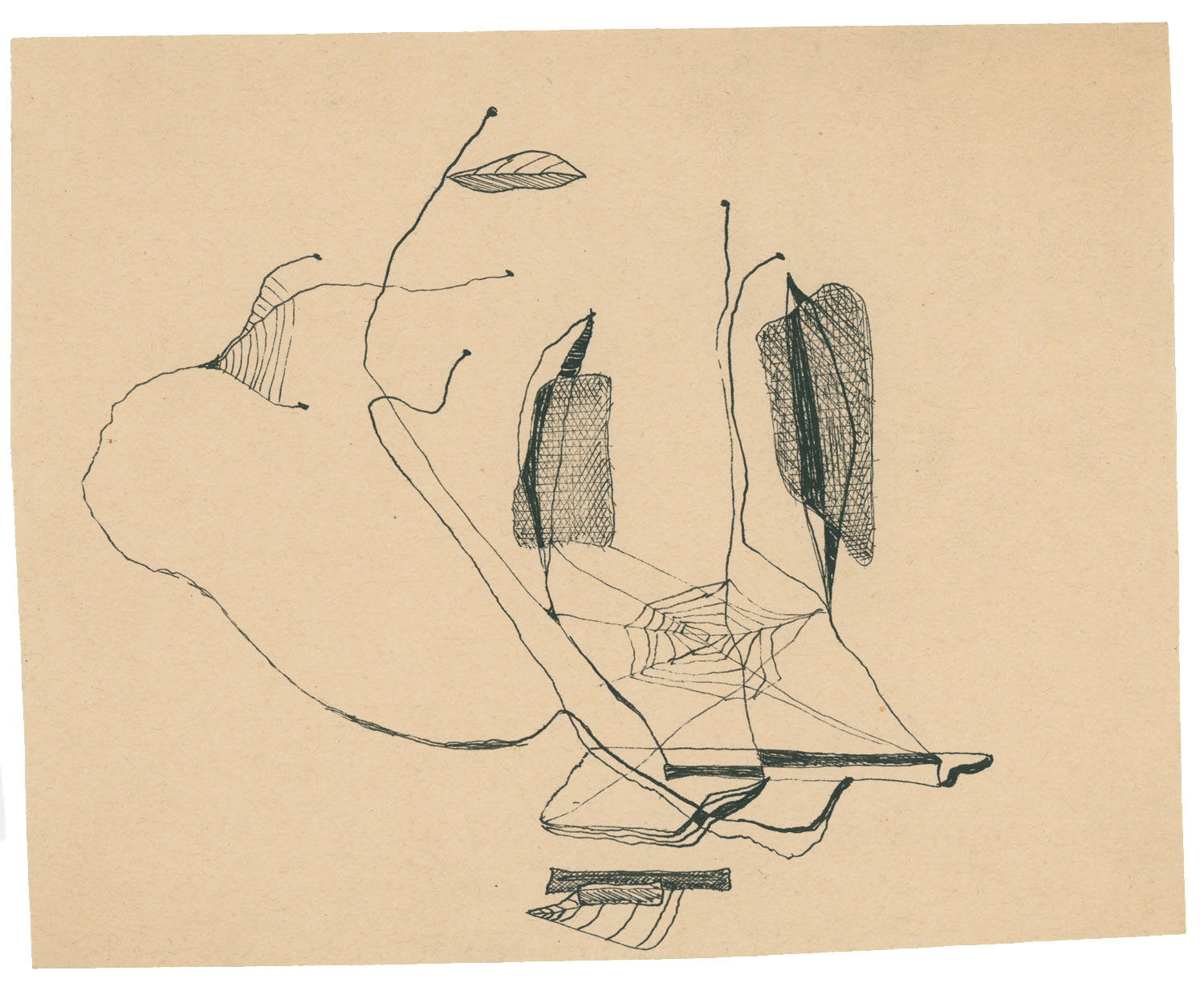 Rysunek Franciszka Michałka z lat 60. Najprawdopodobniej powstał jako szkic do większej kompozycji, stworzonej w technice własnej, z której artysta często korzystał w tamtych latach.