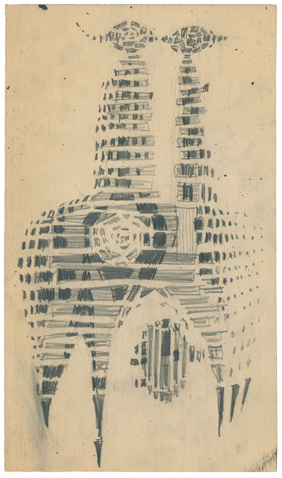 Rysunek Franciszka Michałka z lat 60. Najprawdopodobniej powstał jako szkic do większej kompozycji, stworzonej w technice własnej, z której artysta często korzystał w tamtych latach.