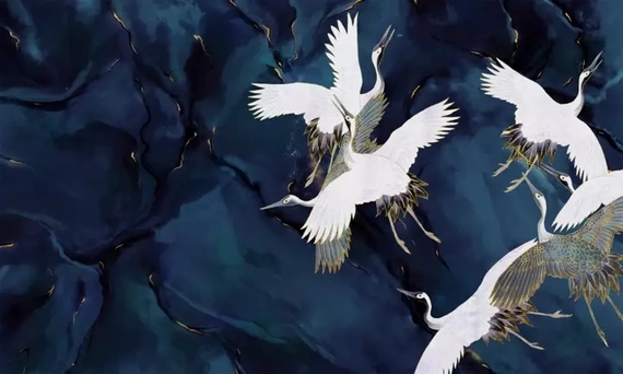 ROYAL TSURU, to nowa wersja kolorystyczna popularnych Żurawi, które dostępne są już w kilku różnych odcieniach. Elegancki, ciemny wzór w kolorach kremu i beżu, oraz granatu w połączeniu z majestatycznymi ptakami, w odcieniach złota, nada każdemu wnętrzu przytulności, ale i elegancji. Wzór w kolekcji Nature, inspirowany sztuką. Tsuru - w tradycji japońskiej jest symbolem szczęścia i długowieczności, ale również według niektórych źródeł honoru i lojalności.