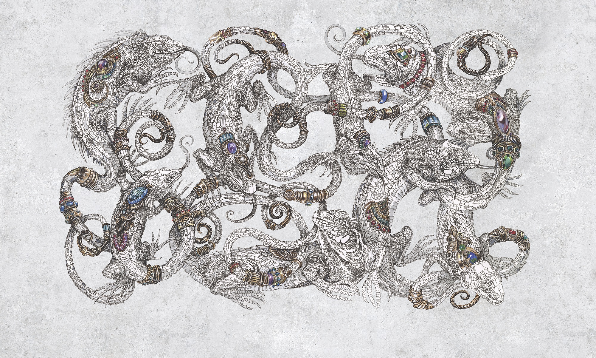 kameleon, grafika, abstrakcja, luksusowe, Wonderwall, ekskluzywnewne, malownicze, nowoczesne