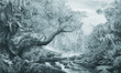 las, drzewa, góry, natura, grafika, luksusowe, Wonderwall, ekskluzywne, artystyczne