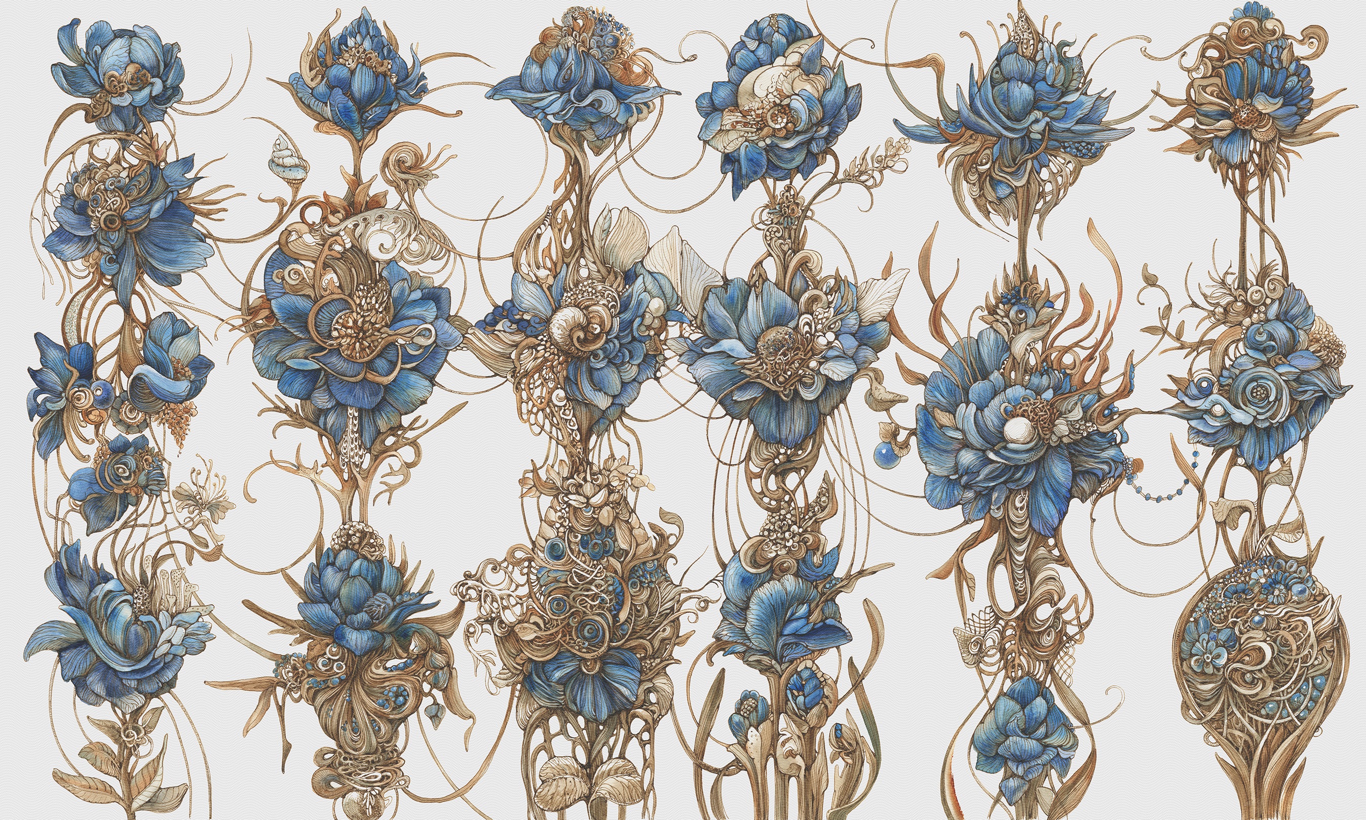 kwiaty, ornament ,natura, grafika, luksusowe, Wonderwall, ekskluzywne, artystyczne