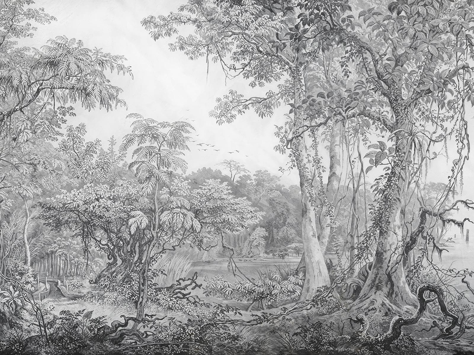 Tapeta Foresta przedstawia malowniczy krajobraz lasu, który wprowadza do wnętrza atmosferę spokoju i bliskości natury. Detale drzew oraz subtelne odcienie zieleni i szarości nadają przestrzeni głębi, tworząc harmonijną i relaksującą aurę. Idealnie sprawdzi się w sypialni lub salonie, gdzie naturalny motyw lasu będzie stanowił eleganckie tło, dodając wnętrzu wyjątkowego charakteru.